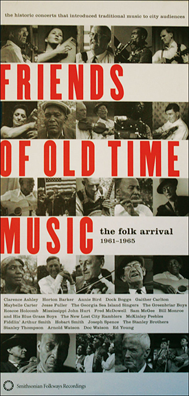 'Friends of Old Time', un coffret de trois cds d'enregistrements live, produits par Peter K. Siegel, sélectionnés parmi la série de concerts new-yorkais qui donnèrent un nouveau souffle à la musique populaire entre 1961 et 1965. Pour la première fois, amateurs et collectionneurs pourront se procurer les concerts donnés au tout début de leur carrière par Doc Watson, Mississippi John Hurt, Joseph Spence, Roscoe Holcomb, Clarence Ashley et Doc Boggs. Le coffret contient également un bon nombre de morceaux inédits de Fred McDowell, Bill Monroe, Mother Maybelle Carter, The Stanley Brothers, et Jesse Fuller. Sur les 55 morceaux du coffret, 53 étaient inédits à ce jour. La superbe qualité du son est le résultat de plusieurs milliers d'heures consacrées à une production audio méticuleuse par l'équipe de Smithsonian Folkways. Des dizaines de photographies d'époque, signées David Gahr, Robert Frank, Alan Lomax et John Cohen, qui mériteraient à elles seulent d'être exposées en galerie, agrémentent l'important livret de soixante pages qui accompagent le coffret.