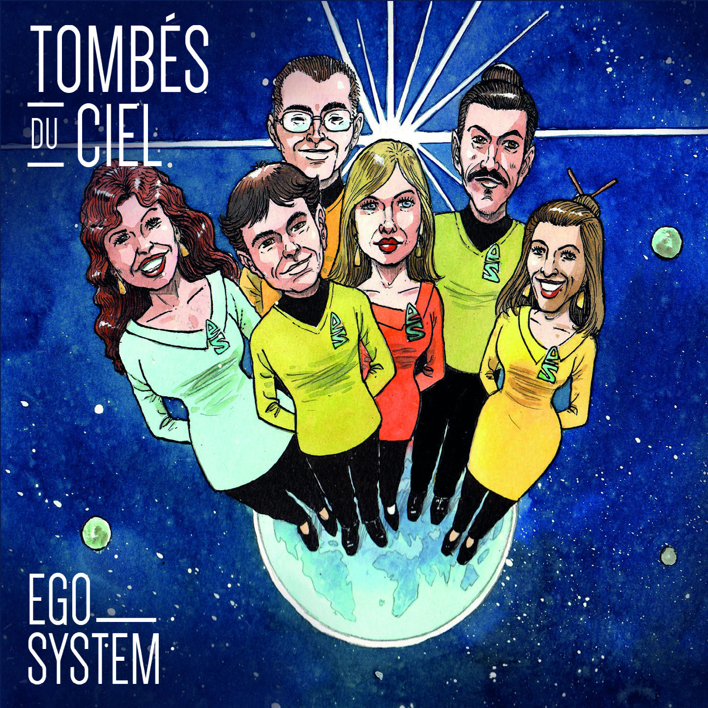 EGO SYSTEM : six voix de Lyon, Paris et Bruxelles, réunies par les deux chanteurs Loïs LE VAN (Révélation Jazz Magasine 2014, gagnant du concours internationnal Voicingers) et Manu DOMERGUE (1er prix+prix du public au Crest Jazz Vocal, "Indispensable" Jazz News avec son album "Chercheur d'orage", du groupe RAVEN). Ces deux-là ont tissé des liens forts en Californie, où ils ont suivi l'enseignement du jazz vocal et de la polyphonie avec maître du genre : Roger Letson, et ont fait partie du sextet a capella Vocal Flight (Prix "Vocal Jazz ensemble" de Reno-NEVADA, Prix de l'Université de Columbia, Downbeat Magazine). Leur initiative autour de ce nouvel album, TOMBÉS DU CIEL, est ambitieuse : mettre en pratique leur expérience du collectif, avec un travail accentué sur l'interprétation de textes dans leur langue maternelle ainsi que des plages musicales permettant l'improvisation ; le tout sur des arrangements d'une audace et d'une virtuosité rare... Une création qui vaut le détour. TRACKLISTING 1- L'anamour (Gainsbourg) 2- Un homme heureux (William Sheller) 3- Tombé du Ciel (J.Higelin) 4- les histoires d'A (Rita mitsouko) 5- Marcia Martienne (Nougaro) 6- La Chanson (Nougaro) 7- Rimes (Nougaro) 8- Melody Nelson (Gainsbourg) 9- Le Vent l'emportera (Noir Désir) 10-Voir (Brel) 11-Avec le temps (Ferré) 12- La bicyclette (Yves Montand)