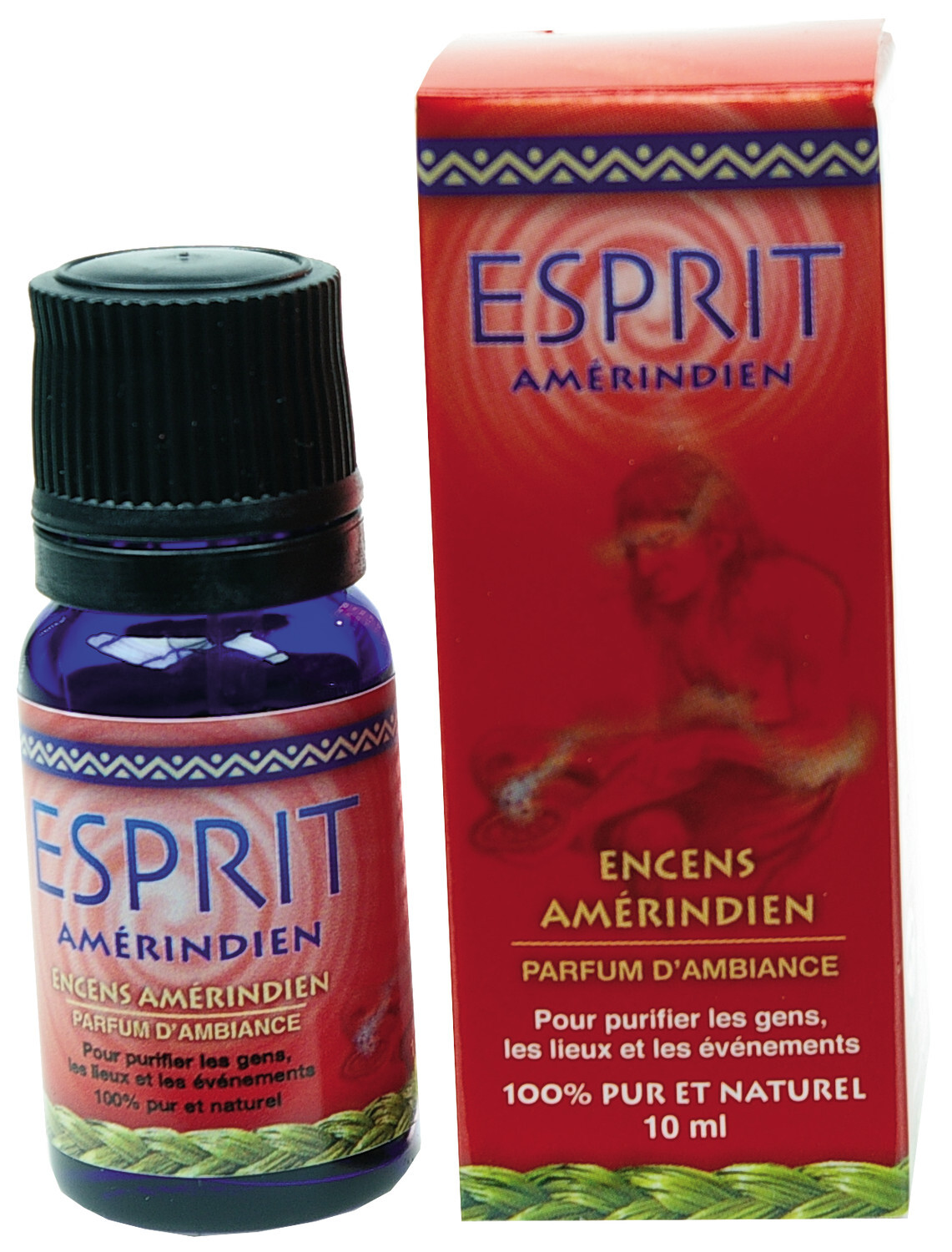 Flacon emballé dans une boite carton individuelle. L'esprit des plantes, représenté par des huiles essentielles et des extraits de plantes 100 % pures et naturelles de cèdre, sauge, foin d'odeur, genèvrier, pin blanc, sapin baumier et bois de santal est savamment uni avec de l'alcool de maïs biologique pour créer un encens amérindien sous forme de parfum d'ambiance. Facile à utiliser, il purifie les gens, les lieux et les évènements. Esprit amérindien favorise la paix, la détente et l'harmonie autour de vous. Son effet est immédiat. Quelques gouttes et vous sentirez la nature vous imprégner de son énergie bienfaisante. Dans la tradition amérindienne, nous utilisons différentes plantes sacrées pour attirer les énergies bénéfiques et purifier notre environnement. Ces plantes sont brûlées dans une coquille d'ormeau et la fumée est offerte aux quatre points cardinaux avec une prière de remerciement. Nous avons développé Esprit amérindien afin de profiter des effets bénéfiques de ces plantes sacrées sans subir les désagréments causés par la fumée. Esprit amérindien ne contient aucun produit chimique, animal, de synthèse ou agent de conservation. Ingrédients : alcool de maïs biologique, cèdre, sauge blanche du désert, foin d'odeur, genévrier, pin blanc, sapin baumier, bois de santal et eau.
