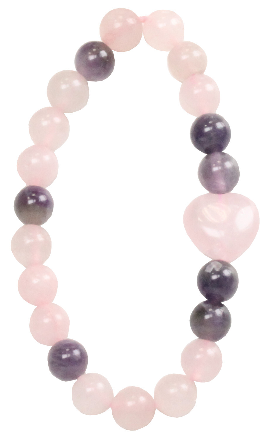 Bracelet Quartz Rose et Améthyste Perles rondes 8 mm et Perle coeur 1,5 cm