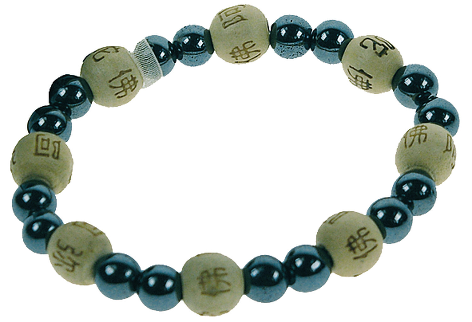 Bracelet Hématite Perles rondes 8 mm et Perles bois 1 cm