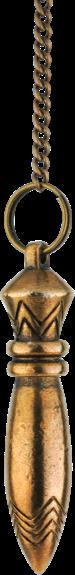 Superbe pendule de Thot en bronze, de conception exclusive. Il s'agit d'une réplique du pendule classique des Grandes Pyramides. Un outil puissant de recherché en radiesthésie. Poids : environ 18 grammes - longueur environ 4,5 cm - diamètre 1 cm.
