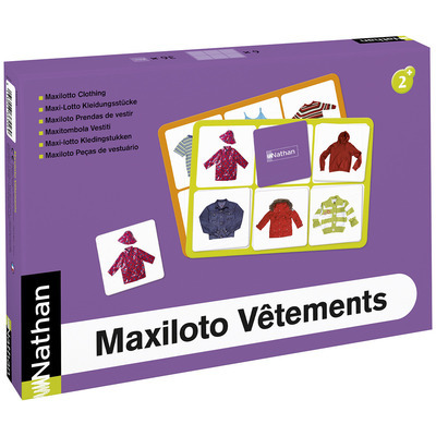 Maxiloto Vêtements est un jeu de loto sur le thème des vêtements et des accessoires. Un jeu de loto proche de l'univers de l'enfant. Chaque planche contient des photos sur le thème des vêtements et des accessoires. Affine l'observation et la prise d'indices. Développe la logique d'association et le langage. Apprend à reconnaître et à nommer des vêtements et des accessoires. Conseil accompagnement du handicap : Enrichit le vocabulaire et stimule le langage. Jetons grand format avec photos sur fond blanc pour favoriser la reconnaissance visuelle.