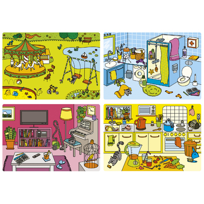 Premier loto des situations sonores est un jeu de loto sonore, exploitable en atelier dirigé, qui associe le son et l'image pour découvrir l'environnement proche et s'approprier le vocabulaire correspondant. Premier loto des situations sonores est un matériel d'écoute et de langage pour 6 enfants, il permet d'apprendre aux enfants : à stimuler le sens de l'observation, à développer la discrimination et la mémoire auditive, à favoriser les échanges et enrichir le lexique. Cet atelier permet de développer le langage et d'enrichir le vocabulaire de la vie quotidienne. Les enfants identifient 30 sons en lien avec des situations de la vie quotidienne, puis ils les localisent en plaçant des jetons sur les 6 planches illustrées : la cuisine, la salle à manger, la chambre, la salle de bains, la rue, le parc. Ils peuvent travailler les scènes l'une après l'autre, ou toutes ensemble. COMPÉTENCES DÉVELOPPÉES Développer l'écoute, la discrimination et la mémoire auditive. Observer et décrire des scènes. Enrichir le vocabulaire de la vie quotidienne. Conseil accompagnement du handicap : Planches illustrées en grand format. Stimule le sens de l'observation, la discrimination et la mémoire auditive. Développe le langage et enrichit le vocabulaire de la vie quotidienne.