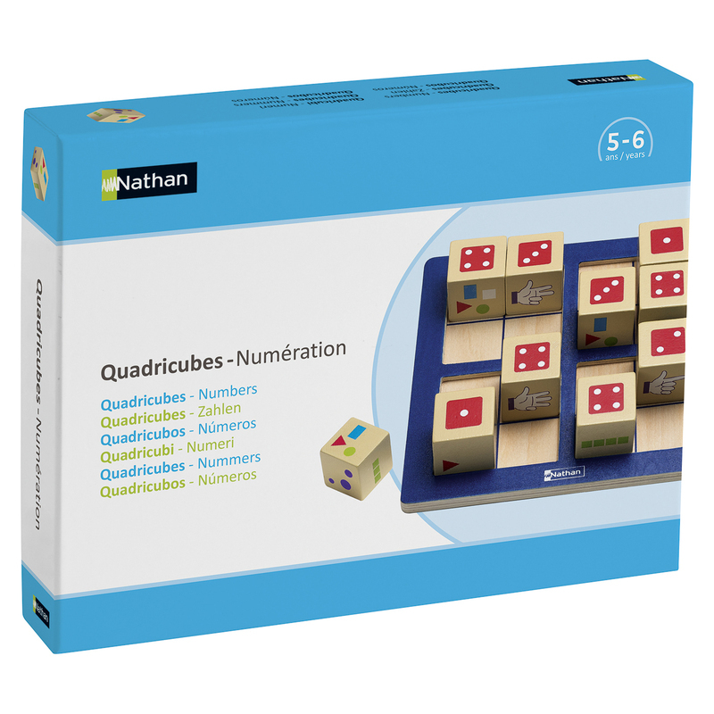 Amusant et captivant ! Sur le principe du Sudoku, Quadricubes - Nombres est un jeu individuel de réflexion qui propose 24 énigmes à résoudre. L'enfant remplit les cases de son socle avec des cubes en bois en veillant toujours à ce qu'une même représentation du nombre ne soit placée : qu'une seule fois par colonne, qu'une seule fois par ligne, qu'une seule fois par carré de 4 cases. Les 24 énigmes présentées sur les fiches sont réparties en 4 séries de difficulté progressive, en fonction du nombre d'indices déjà disposés dans la grille. 2 entrées sont possibles : par niveau de difficulté ou par représentation des nombres. COMPÉTENCES DÉVELOPPÉES Observer, raisonner, analyser et déduire. Se repérer dans une grille (lignes et colonnes). Décoder des consignes, prendre des indices.