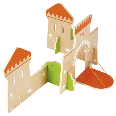 3 grands panneaux et 2 buissons en bois à assembler facilement pour créer un univers de jeux. Les grands panneaux et les buissons s'assemblent en angle ou en ligne et se combinent également avec les éléments de décor village. Le pont levis peut s'ouvrir et se fermer.