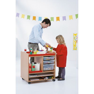 Une desserte d'activités mobile pour faciliter le stockage en classe. Cette desserte d'activités est très pratique avec : 4 roulettes, dont 2 avec freins, 3 bacs en plastique incolores, 1 large plan de travail avec rebords. Rangement facile du papier jusqu'au format raisin et les rouleaux. .
