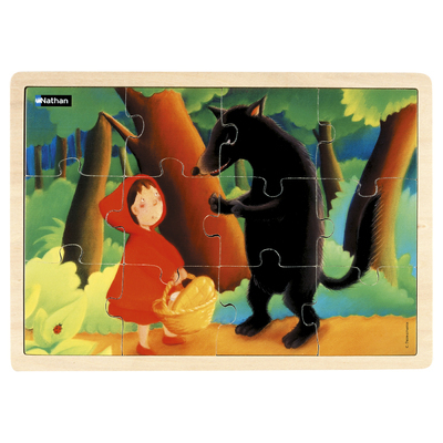 Un puzzle composé de 12 pièces sur le thème du conte : Le Petit Chaperon rouge. Un puzzle sur le thème d'un conte traditionnel à reconstituer avec modèle (amovible). Des illustrations riches et colorées, imprimées sur le bois, pour favoriser le langage. Cadre pour caler les pièces et faciliter le rangement.