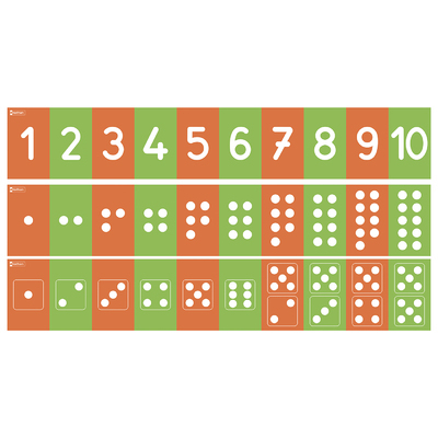 Tracés rugueux - Repositionnables - Les nombres sont des supports adhésifs repositionnables grand format à placer sur une surface très lisse pour l'apprentissage des nombres de 1 à 10. 3 bandes en grand format avec 3 représentations des nombres de 1 à 10. Elles sont adhésives et repositionnables, à placer sur une surface très lisse pour l'apprentissage des nombres. La matière rugueuse développe la sensibilité tactile des enfants. Ces tracés rugueux Les nombres sont juxtaposables pour offrir une comparaison entre les différentes représentations.