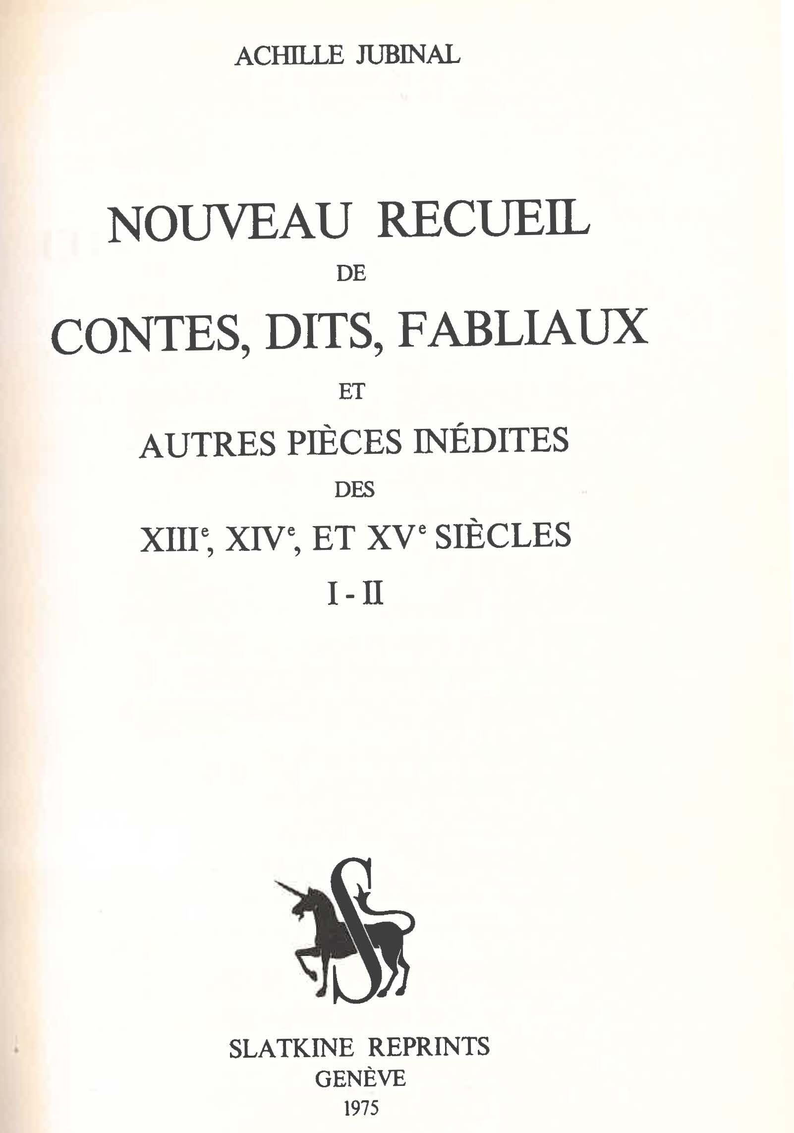 Nouveau recueil de contes, dits, fabliaux et autres pièces inédites des XIIe, XIVe et XVe siècles