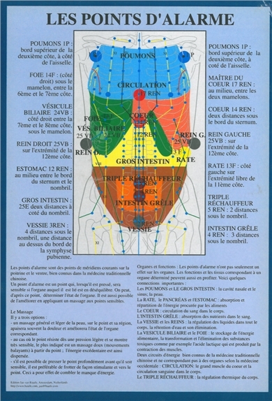 Les principaux points d'urgence. Une planches du corps entier vu de face et au verso, une planche du torse. Nombreuses explications. Plastifié au format 17 x 24 - Lot de 5