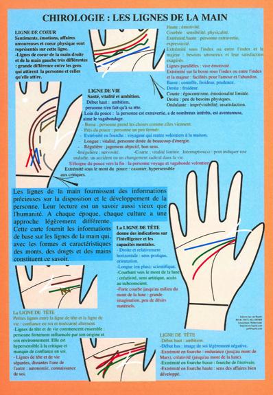 Huit croquis avec la signification des différentes lignes de la main. Plastifié au format 17 x 24 - Lot de 5