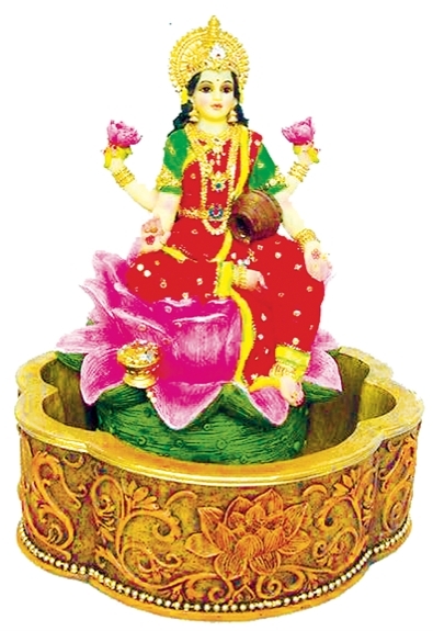 Lakshmi : Déesse de la forune, de la santé et de l'abondance. Où que soit placée Lakshmi, elle vous apportera fortune et santé. Placer la sur un autel ou au nord dans votre habitaion, elle vous apportera abondance et vous appuiera dans vos intentions. Elle est le destructeur des douleurs qui infestent l'humanité : spirituellement, mentalement et physiquement. Fontaine livrée avec pompe.
