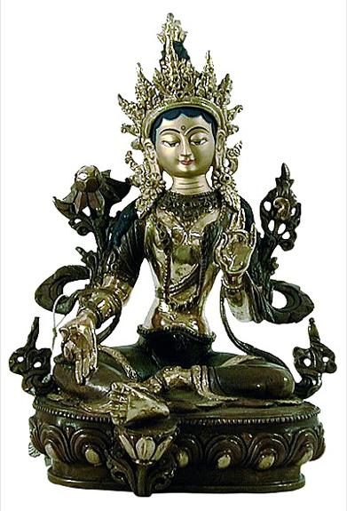 La tara verte est particulièrement connue pour sa puissance à surmonter les situations les plus difficiles, donnant la protection et le réconfort contre tous les dangers. Il s'agit d'une déitée tibétaine qui intervient toujours pacifiquement. Elle est le bodhisattva féminin de la compassion.