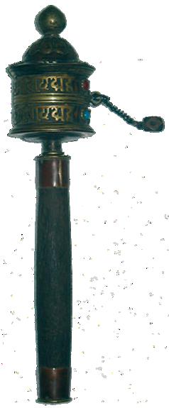 Cylindre rempli de mantras ( paroles énoncées par les bouddhas) que l'on fait tourner dans le but de répandre sur les êtres la bénédiction qui en émane.