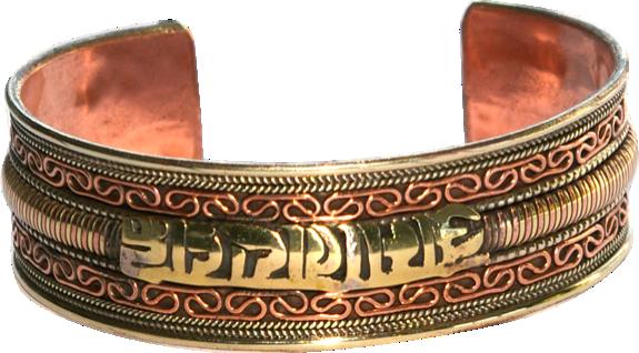 Mani est un des plus célèbres mantra bouddhiste.Bracelet en cuivre et laiton.Largeur : 1,9 cm environ - Diamètre : 6,4 cm environ