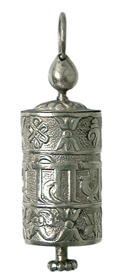 Cylindre rempli de mantras ( paroles énoncées par les bouddhas) que l'on fait tourner dans le but de répandre sur les êtres la bénédiction qui en émane.Hauteur : 4 cm