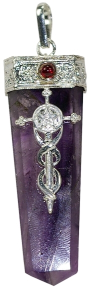 Pendentif pointe Améthyste pentacle et croix