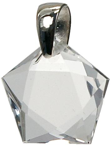 Le Pentagramme est le symbole de l'homme avec ses quatre membres et sa tête et il exprime aussi la domination de l'esprit sur les quatre éléments, et c'est par ce signe qu'on enchaîne les démons de l'air, les esprits du feu, les spectres de l'eau et les fantômes de la terre... Le pentagramme est ce qu'on nomme, dans la Kabbale, le signe du microcosme, par opposition au grand Sceau de Salomon qui représente l'unité du macrocosme.Le Pentagramme a un sens positif avec la pointe en haut et un sens négatif avec la pointe en bas. Dans le symbolique traditionnel le Pentagramme négatif est perçu comme un symbole féminin, en rapport avec le paganisme, seulement plus tard il fut transformé en symbole satanique par l'Église, qui luttait contre les influences chamaniques des prêtresses de la déesse mère (la vieille religion issue du Néolithique dont les vierges noires du catholicisme en sont les traces tangibles).Le pentagramme joue un rôle très important dans la symbolique franc-maçonnique >, en tant qu'« étoile flamboyante ». Les angles sont remplis de rayons (ou de flammes) et un « G » (signifiant « Gnose » ou « Géométrie ») est inscrit au centre de l'étoile : elle représente « le Soleil >, qui éclaire la Terre > de ses rayons et fait profiter l'humanité de ses bienfaits, en procurant à tous les habitants de la terre > la vie > et la lumière > ». Le pentagramme représente l'homme parfait qui possède les cinq vertus parfaitement développées [sagesse, amour, vérité, justice, bonté]. À un autre point de vue, il représente aussi les cinq sens : toucher, goût, odorat, ouïe et vue »Ce pentagramme de cristal monté avec une bélière en argent massif va favoriser votre intégration dans cette nouvelle vision de l'univers dans lequel l'humain doit remplir un rôle de gestionnaire avisé entre les différentes dimensions.
