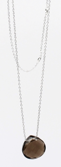 Collier argent avec goutte briolette Quartz Fumé 13 mm