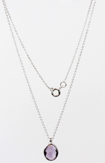 Collier en argent avec goutte d'Améthyste sertie 8 x 10 mm