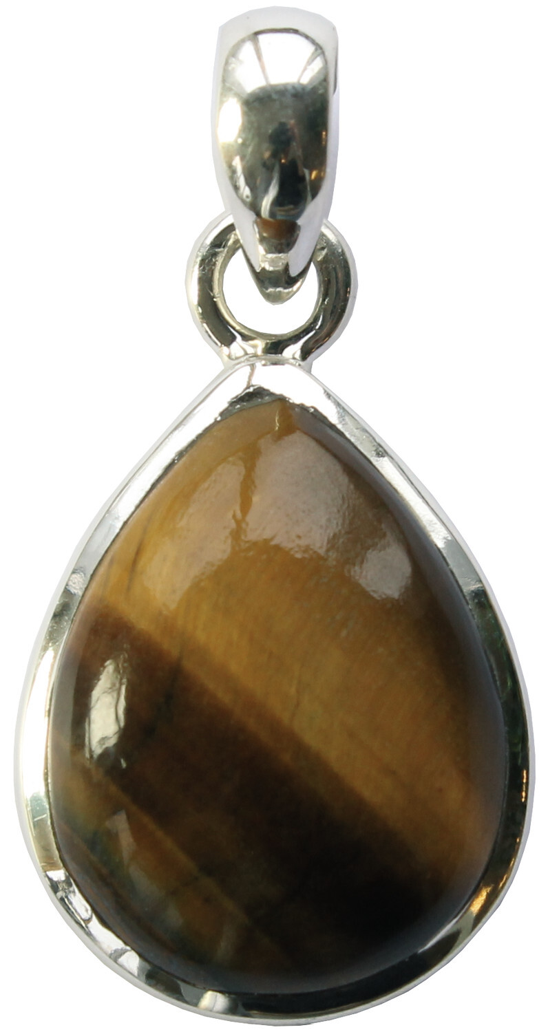 Pendentif Oeil de Tigre taillé en poire. Dimensions 15x20mm. Argent 925 millièmes.