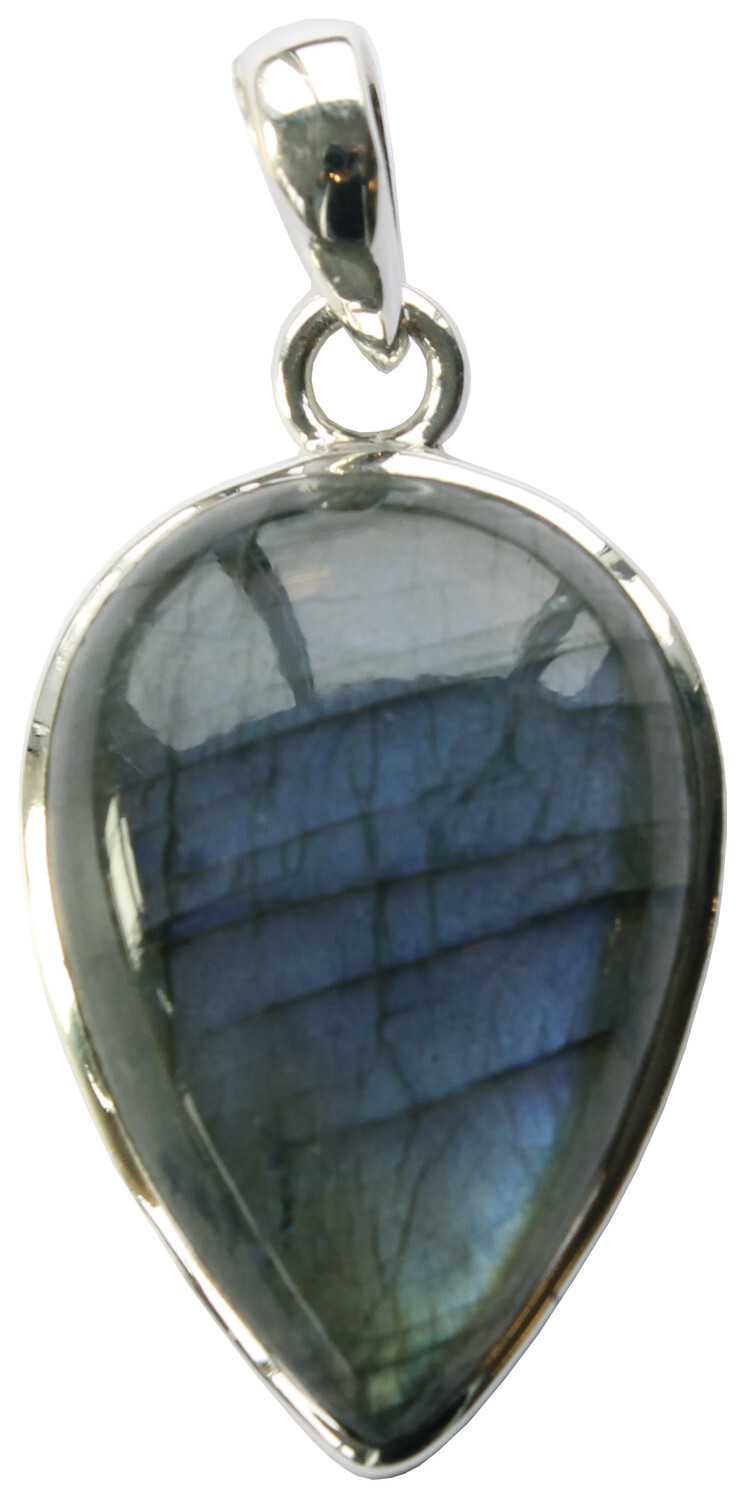 Pendentif Labradorite taillée en poire. Dimensions 20x30mm. Argent 925 millièmes. Le pendentif de labradorite peut être monté dans un sens ou dans l'autre afin de mettre au mieux en valeur les reflets de la pierre.