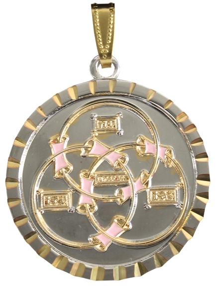 Cette magnifique médaille est par son graphisme, issue de la pensée divine. Les trois cercles représentent la trinité. Dans les temps anciens on l'a appelée le Signe Sacré. Elle assure à son porteur une sérénité qui lui permet de traverser la vie sans obstacles. Le rayonnement qui s'en dégage est une force directement venue du macrocosme. Elle est l'alliée des anges protecteurs. Sa force universelle réagit bien au-delà de celui qui la porte en créant autour de lui un havre de paix et de bonheur. Composants : zamak, dorure or fin, émail. Garantie sans nikel, conforme à la norme CEE. Vendue dans pochette suédine.