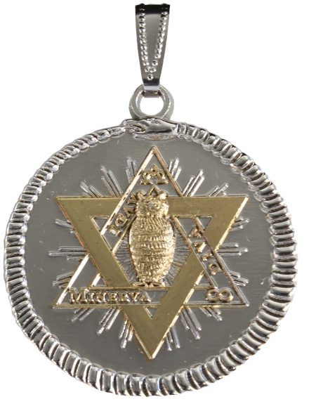 La médaille Minerva est l'Union du Ciel, de la Terre et de toutes les Forces du Jour et de la Nuit. Gardienne de notre vie, elle en assure la protection et le bien-être. En rapport avec les Arts et les Sciences. Minerve fille de Jupiter est la gardienne incontestable de ceux qui cherchent à se distinguer dans la vie, et qui aspirent à de hautes fonctions. Elle est renommée pour son pouvoir d'attraction de la richesse. Elle est associée au pentacle de Salomon et de ce fait en acquiert les immenses pouvoirs. L'ensemble est entouré par un Ouroboros symbolisant l'union du monde chthonien, figuré par le serpent, et du monde céleste figuré par le cercle. L'ensemble des symboles représente une grande valeur vibratoire en Haute Magie évocatrice. Composants : zamak, dorure or fin. Garantie sans nikel, conforme à la norme CEE. Vendue dans pochette suédine.