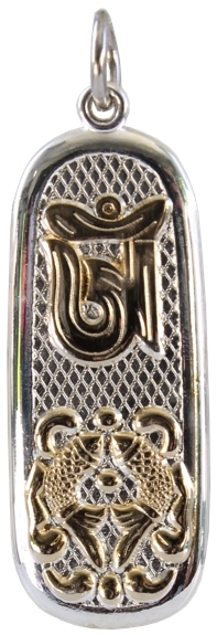 La médaille Om est associée aux doubles poissons qui apportent la chance, la richesse, la fécondité. Dans l'iconographie chrétienne, le poisson a fait l'objet d'un certain nombre d'interprétations. Le monosyllabe Om est le symbole le plus chargé de sens de la tradition hindoue. Il est le son primordial inaudible, le son créateur à partir duquel se développe la manifestation, l'image donc du Verbe. Il est l'impérissable, l'inépuisable (akshara) ; il est l'essence même des Vedas, et donc de la science traditionnelle. Il est le symbole de Ganesha et correspond au Swastika emblème du développement cyclique de la manifestation, à partir du centre primordial immuable. Composants : zamak, dorure or fin, bicolor, gravure recto/verso. Garantie sans nikel, conforme à la norme CEE. Vendue dans pochette suédine.