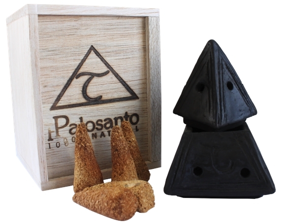 Porte-encens Pyramide noir - inclus 10 cônes de Palo Santo