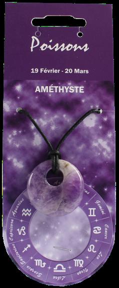 Pendentif Pierre Ronde Percée - Poissons - Améthyste