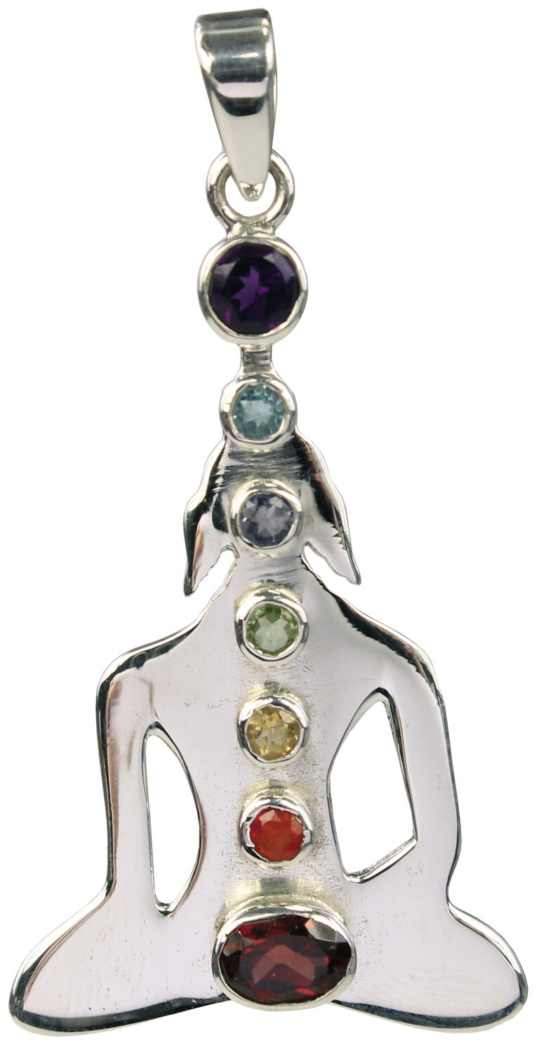 Pendentif Pierres des Chakras Argent 925 Bouddha