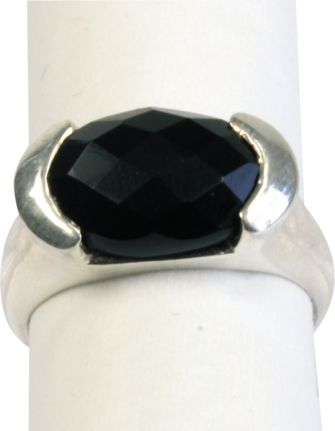 Bague argent Onyx noir facetté - Taille 52
