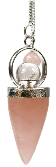 Pendule cône poli monté sur base en métal argenté avec un cristal de quartz rose. Le cristal de roche est assimilé à la pureté. Il est idéal pour toutes les recherches en intérieur, il convient à tous les utilisateurs. Chaine de 17cm. Fabriqué en Inde.