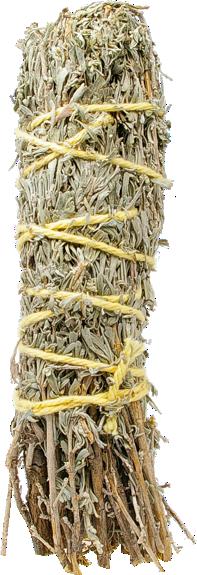 Bâton de fumigation de sauge et de résine de copal d'Amérique du Nord. Longueur 18 cm. En ésotérisme, comme dans beaucoup de différentes cultures, brûler la sauge (feuilles séchées et tiges) purifie les lieux des énergies négatives et purifie notre âme lorsqu'on se baigne de sa fumée. On la retrouve sous forme de gros cigare pour la faire brûler tel un bâton d'encens, ou bien en sachet pour la purification. La méthode de purification la plus courante est celle des amérindiens; il s'agit de déposer la sauge séchée dans une grosse coquille (Abalone), de la faire brûler, puis de répartir la fumée autour de soi (tête et corps).