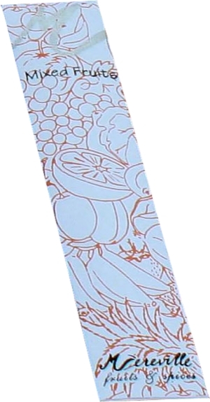 Lot de 5 paquets d'encens Mereville en bâtons (10 bâtons par paquet), parfum Mélange fruité, de la série encens exotiques "Fruits & épices" de Auroville en Inde. Fabrication exclusivement avec des produits naturels sans aucune substances toxiques. Produit garanti non fabriqué par des enfants.