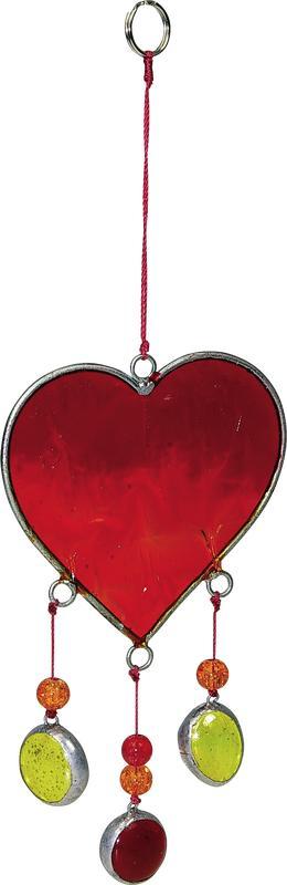 Attrape soleil motif coeur en verre et de couleur rouge, plus trois petits galets de verre sertis. Chaque galet est surmonté d'une perle assortie. Le manque de soleil peut influencer fortement notre humeur. Attachez un attrape soleil devant votre vitre afin de profiter des doux rayons du soleil. Vous apprécierez les reflets qu'ils projetteront dans votre foyer, autant de couleur et de gaieté pour vos journées. La manière dont le verre a été coulé lors de la création de l'attrape soleil lui permet de refléter la lumière dans toutes les directions. Les aspérités crées intentionnellement lui permettent d'être actif à la fois sur votre caractère et sur votre santé.