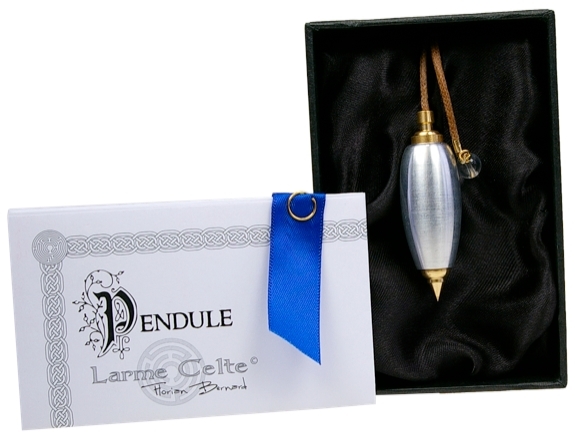 Pendule modulable Havran de type ogive en aluminium brossé pesant 31 grammes. La base centrale est en laiton tourné et le corps en aluminium est remarquable pour sa résistance à l'oxidation et pour sa faible densité. Le pendule Havran ogive est constitué de trois pièces tournées et d'une tige filetée centrale. Ces quatre parties s'assemblent avec précision, offrant ainsi un centrage du pendule d'une grande justesse. Fruit d'une longue réflexion sur la forme et la réalisation, d'une étude approfondie de la radiesthésie elle-même et de ses besoins, les pendules Larme Celte sont réalisés à la main en atelier. Cette facture en fait des pièces uniques et précieuses. Chaque pendule est travaillé comme un bijou à partir de brutes de fontes de grande qualité. Elles sont remises en forme, émerisées, polies, percées et montées en pendule. Les pendules Larme Celte sont très recherchés par les radiesthésistes exigeant précision et réactivité. Le pendule Larme Celte est une marque déposée, de fabrication artisanale nantaise. Ce pendule est présenté dans sa boite individuelle, avec un mode d'emploi et conseils du fabriquant.