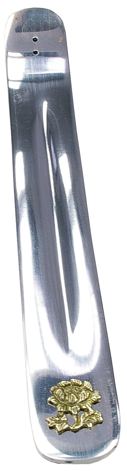 Porte-encens métal argenté avec motif relief doré. Longueur : 24.5 cm - Largeur : 3 cm