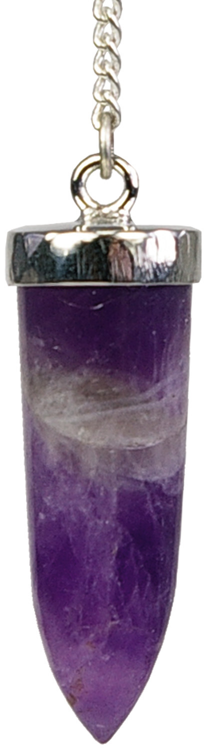 Pendule Pointe Amethyste monté sur chaine en métal argenté. hauteur : 2,5 cm - Diamètre : 1 cm environ.