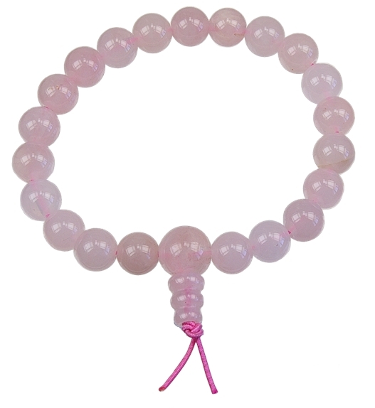 Mala signifie en sanskrit «collier de fleurs» ou «guirlande de perles». Ces bracelets sont composés de 21 perles en pierre naturelle. Les moines et les pratiquants bouddhistes le portent, comme il est d'usage, à leur poignet gauche. La plus grosse perle (ou «bille de tête») représente la connaissance de la vacuité. Le petit cône qui la surmonte est le symbole de la vacuité elle-même. Diamètre intérieur bracelet : 5 cm. Diamètre boule : 8 mm. Le quartz rose apaise les peines, les déceptions et blessures émotionnelles. Il vous aidera à gagner confiance en vous et à vous ouvrir aux autres.