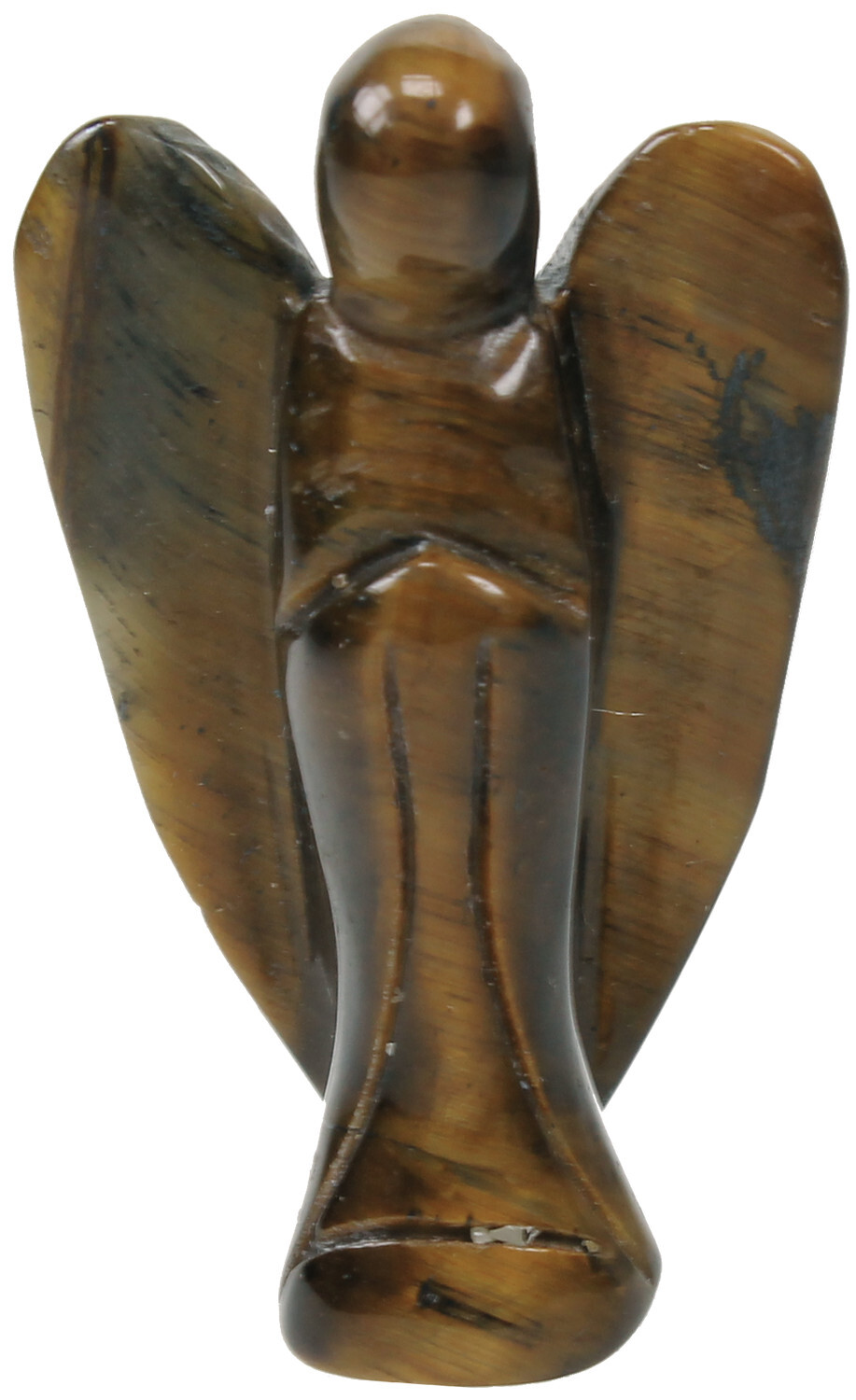 Ange en oeil de tigre de qualité extra, taillé et polie à partir d'une seule pièce. Hauteur : 5 cm pour un poids d'environ 50 gr. Superbe pièce livrée dans une boite individuelle garnie.