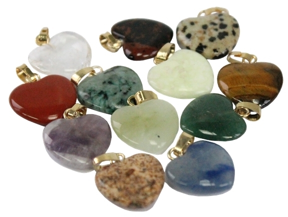 Boîte présentoir de 50 pendentifs en forme de cœur. Découvrez un assortiment des principales pierres (Améthyste, Aventurine, Cristal de Roche, Jaspe, Oeil de Tigre, Onyx Noir, Quartz Rose, Sodalite,...). Bélière en métal doré. Dimensions du cœur : 1,5 cm.