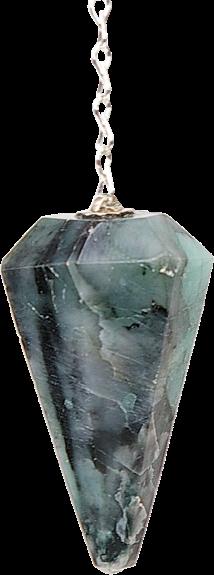 Pendule conique et poli à 12 facettes en véritable émeraude semi-précieuse, monté sur une chaine en métal argenté de 25 cm avec un anneau. L'émeraude est efficace contre les rhinites, la grippe et les bronchites chroniquse. Elle renforce le pancréas, le fois et soulage l'estomac et les problèmes intestinaux. Elle apaisera les douleurs liées à la colonne. L'émeraude apporte la paix intérieure, l'harmonie entre le plan physique, émotionnel et intellectuel. C'est aussi la pierre du savoir et de la connaissance. Considérée comme un symbole de force vitale, elle permet d'exprimer clairement ce que l'on ressent. Facilitant la divination, l'émeraude développe la réceptivité, l'intuition, la sensibilité et la mémoire. L'émeraude est une pierre du coeur qui est excellente pour le travail portant sur les rêves et la méditation, car elle favorise un approfondissement de la spiritualité et une expansion de la conscience. Il s'agit aussi d'une pierre de guérison à usages multiples.