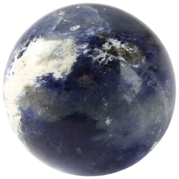 Sphère en sodalite du Brésil. Qualité extra. diamètre 5 cm. Pierre d'élévation de l'esprit, la sodalite développe la conscience de nos actes et de leurs conséquences ainsi que la réflexion structurée. Elle inspire ainsi la soif de connaissance en tant que besoin de comprendre le monde qui nous entoure. Sereine, la sodalite développe le calme intérieur, facilitant ainsi la détente et la méditation. Elle est très utilisée pour calmer les affections de la gorge et des yeux, la fièvre et l'hypertension.