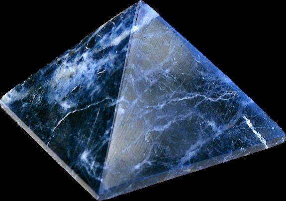 Pyramide en sodalite du Brésil. Qualité extra. Dimmensions de la base : 5 x 5 cm. Pierre d'élévation de l'esprit, la sodalite développe la conscience de nos actes et de leurs conséquences ainsi que la réflexion structurée. Elle inspire ainsi la soif de connaissance en tant que besoin de comprendre le monde qui nous entoure. Sereine, la sodalite développe le calme intérieur, facilitant ainsi la détente et la méditation. Elle est très utilisée pour calmer les affections de la gorge et des yeux, la fièvre et l'hypertension.