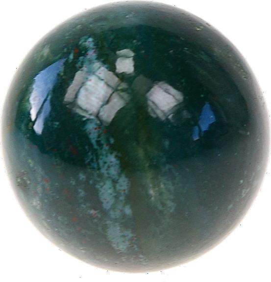 Sphère en Héliotrope de 4 cm de diamètre sous pochette en suédine noire. L'héliotrope est une variété de calcédoine, pour son beau vert piqueté d'intenses taches rouges, on l'appelle aussi jaspe sanguin (nom qui devrait, selon certains spécialistes, être réservé uniquement aux jaspes d'un rouge homogène) ou, dans les pays anglo-saxons, bloodstone ("pierre de sang "). La tradition la classe dans les pierres de jeu, liées à la chaleur et au sang, ainsi que dans les gemmes magiques, capables de protéger des sortilèges et des maléfices, de prévoir le futur et d'assurer la longévité. Au Moyen Âge, on croyait qu'il rendait invisible : il est probable que la même propriété fut aussi associée à une herbe. Sur un plan spirituel et mental, en lithothérapie, l'héliotrope équilibre le yin et le yang et harmonise le corps physique, émotionnel et mental avec le corps éthérique. La pierre Héliotrope associe l'énergie purifiante du vert à la vitalité du rouge. Pierre d'ancrage en douceur, elle nous inspire la stabilité et le courage. Sur le plan psychique, aide à trouver sa voie.