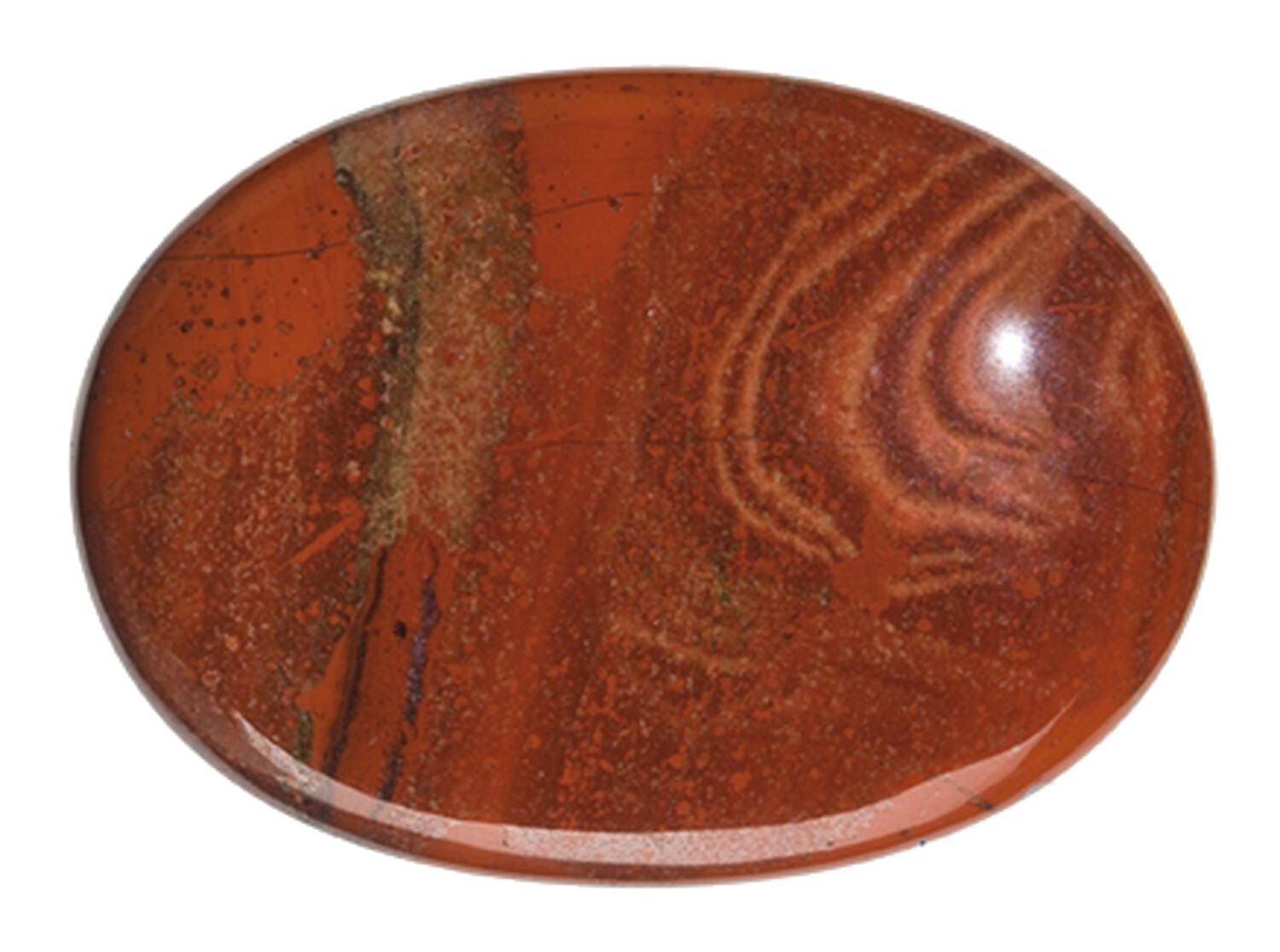 Galet GM Jaspe Rouge : la pièce de 5 x 7 cm. Aide à sortir des périodes de grande fatigue nerveuse ou physique en redonnant de l'énergie profonde et durable. Donne la force et le courage de s'affirmer, d'affronter les difficultés de la vie. Accélère la cicatrisation, active la circulation sanguine et régule le foie. Renforce les organes sexuels mâles et lutte ainsi contre l'impuissance.