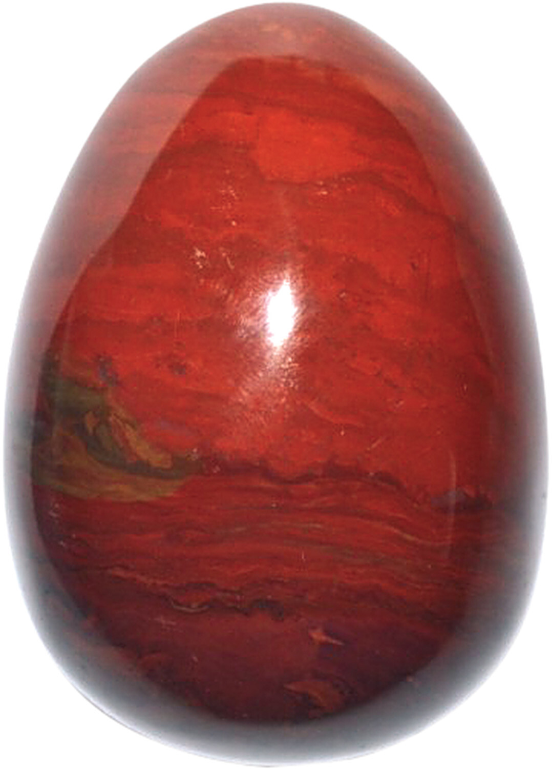 Oeuf Jaspe Rouge : la pièce de 30 x 45 mm. Aide à sortir des périodes de grande fatigue nerveuse ou physique en redonnant de l'énergie profonde et durable. Donne la force et le courage de s'affirmer, d'affronter les difficultés de la vie. Accélère la cicatrisation, active la circulation sanguine et régule le foie. Renforce les organes sexuels mâles et lutte ainsi contre l'impuissance.